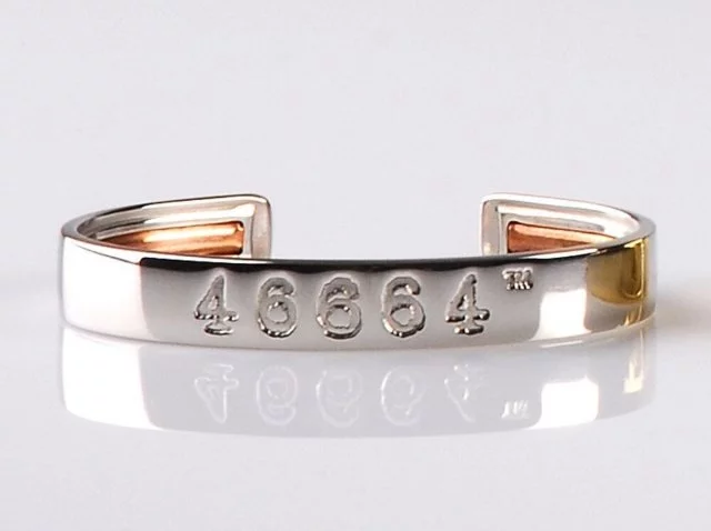 In den Armreif ist die Nummer 46664 eingraviert, Nelson Mandelas Gefangenennummer auf Robben Island. Auch etliche Stars tragen die Bangles mit Stolz und machen sich für Mendelas Sache stark.