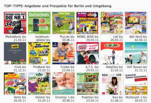 Was essen wir in dieser Woche? Wo gibt es im Moment technische Geräte besonders günstig? Und wer hat den schönsten Kinderwagen für das wenigste Geld? MeinProspekt.de hat sie alle versammelt, die Prospekte aus ganz Deutschland und so natürlich auch die Prospekte für Berlin. Nichts ist einfacher, als hier virtuell zu blättern und die angebotenen Unterlagen zu durchstöbern – in aller Ruhe und ganz ohne Stapel an Papiermüll. Wählen Sie Ihren Berliner Bezirk aus, und schon flattern Ihnen seitenweise interessante Neuigkeiten ins Haus, die Sie nicht entsorgen müssen.