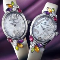 Inspiriert wurde diese Kreation von Shakespeares Komödie „Ein Sommernachtstraum“, genauer gesagt von der magischen Welt der Feen, die darin beschrieben wird. Die Uhr erstrahlt durch die Farben von Citrin, Amethyst, Peridot, Rhodolit und Topas, aber auch durch die Diamanten, die sich je nach Modell wie Blattwerk das Zifferblatt erobern.