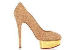 Aufgegriffen werden zum Beispiel ihre beliebten „Kitty“-Flats mit einem Katzengesicht auf der Schuhspitze. Zudem werden besondere Materialien verwendet wie Kork oder Perspex. Pailletten und Lack bringen die Kollektion zum Glänzen. Farblich überzeugen die Stücke mit Tönen wie Gold, Orange oder Pink.