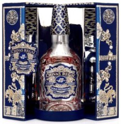 Nur 3000 Exemplare gibt es von dem neuen Chivas-Lacroix-Whisky. Der französische Modeschöpfer ließ sich für das Design vom Hofe von Ludwig XIV inspirieren. Die Hülle ist aus blauem Samt verziert mit üppigen goldenen und silbernen Stickereien. Innen ist die Ummantelung mit Spiegeln ausgekleidet und das Design setzt sich auf der Flasche fort.