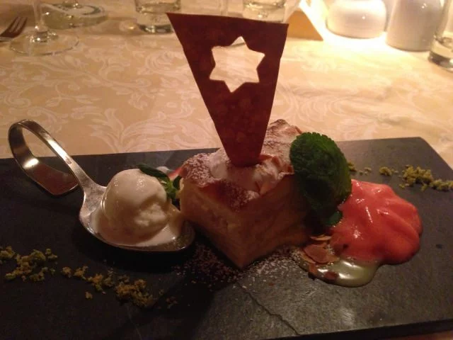Zum anderen werden die Gäste am Abend mit mehrgängigen Menüs verwöhnt, die der Chef des Hauses aus lokalen Produkten selbst entwickelt. Lediglich die rotierende Bedienung am Platz ist gewöhnungsbedürftig. Während man anderenorts einen festen Kellner hat, der dann die persönlichen Vorlieben nach ein paar Tagen kennt und zu dem man eine gewisse Beziehung aufbauen kann, teilen sich bis zu fünf Kellner- und Kellnerinnen die Annahme der Bestellungen, das Eindecken, Servieren und Abräumen. Die sorgsam zubereiteten und fein komponierten Gerichte und die große Weinkarte lassen darüber aber leicht hinwegsehen.