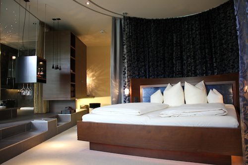 Die rund gestalteten Top-of-Suiten im Hotel Gams verfügen darüber hinaus über bodentiefe Fenster und einen umringenden Balkon. Ein luxuriös ausgestatteter Badbereich und Dekorationen aus indischer Seide runden das erlesene Erscheinungsbild der Top-of-Suiten gekonnt ab.