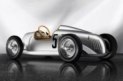 Das Silberpfeil Auto Union Typ C ist als 1:2 Modell mit Kettenantrieb erhältlich und kostet so viel wie ein Kleinwagen. Kleine Rennfahrer von bis zu 1,35 m haben darin Platz.