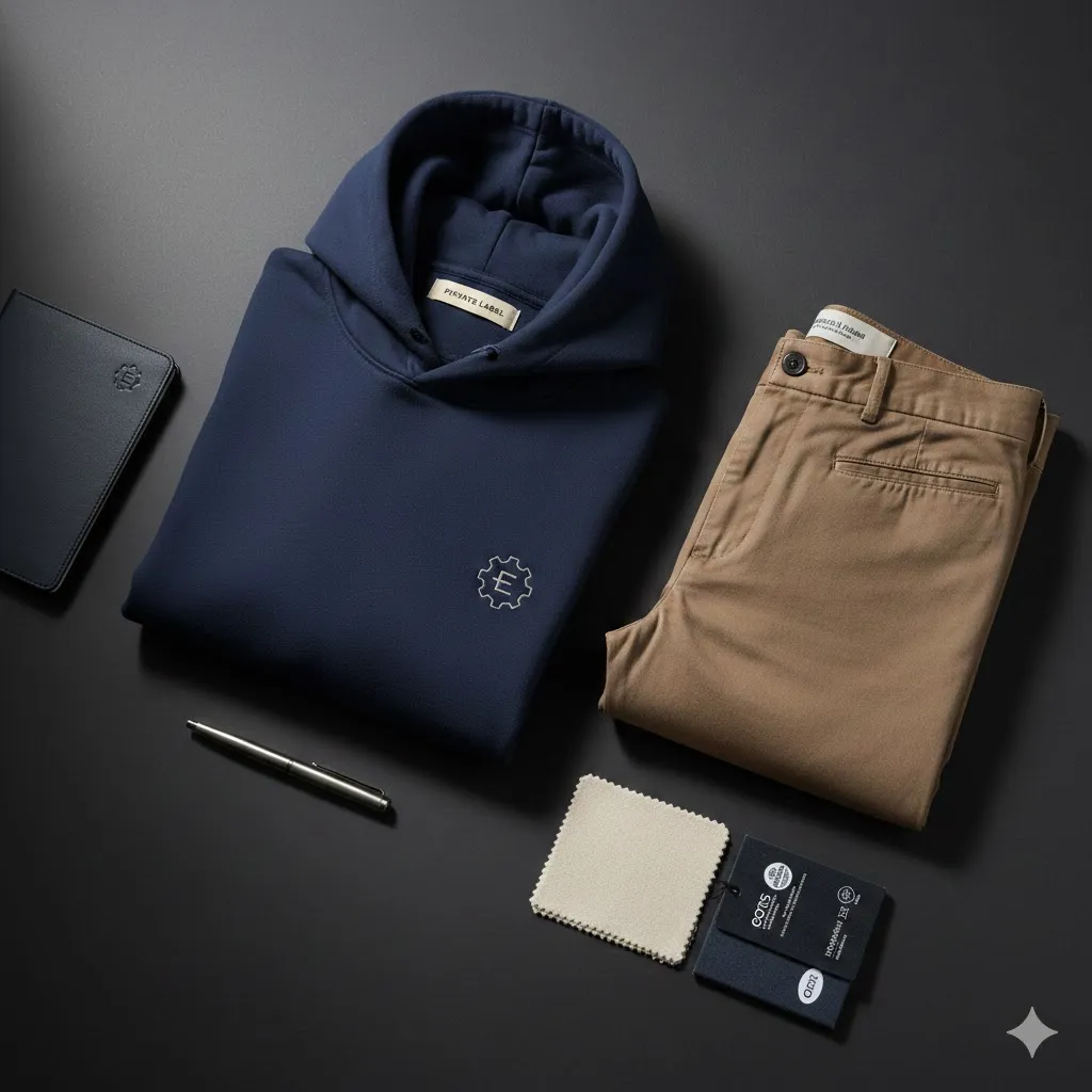 Private Labeling: Anstelle des Herstelleretiketts wird ein eigenes, individuell gestaltetes Nackenlabel eingenäht. Dies verwandelt das Kleidungsstück endgültig in ein Produkt der eigenen Marke und steigert den wahrgenommenen Wert erheblich.