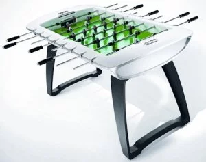 Doch das sagt natürlich noch lange nichts über die Spielqualität aus. Die soll besonders hoch sein und der von professionellen Turnierkickern entsprechen. So etwas ist natürlich kein Schnäppchen. Der geneigte Hobby-Tisch-Fußballer muss 12.900 Euro für ein Modell hinlegen.