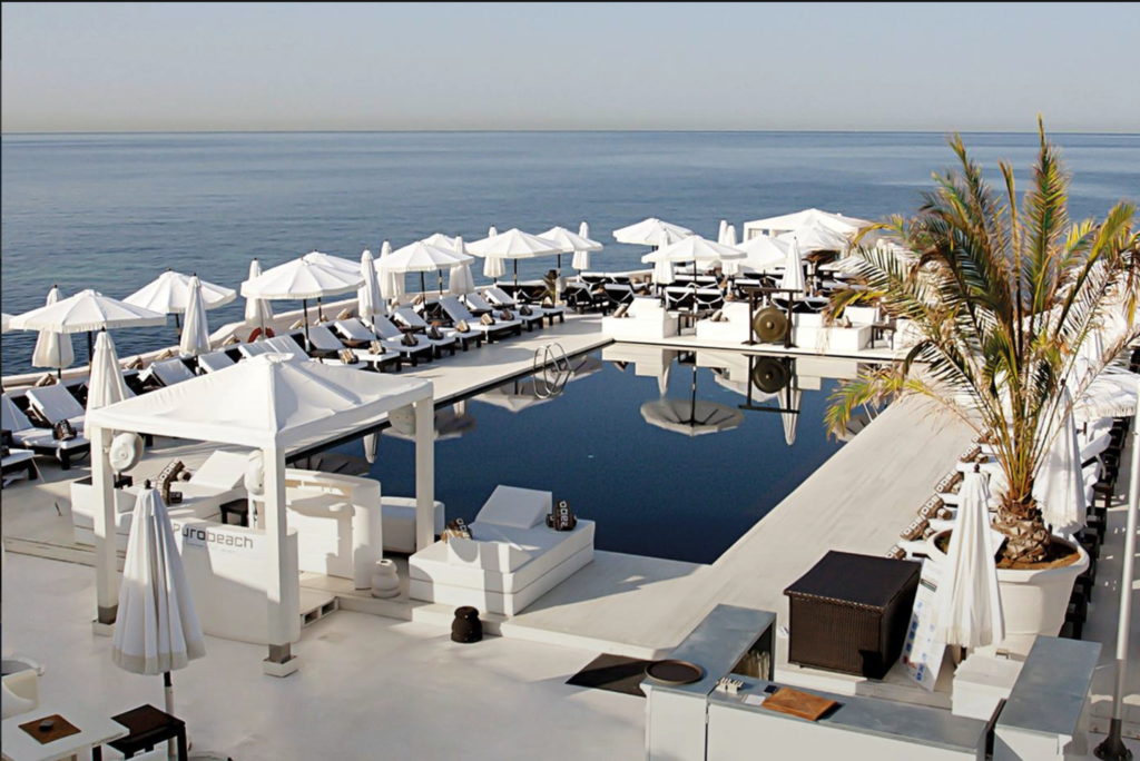 Auf einer kleinen Halbinsel bei Palma liegt der Puro Beach Club. Vor dem Blau des Mittelmeeres, kann man es sich auf strahlend weißen Liegen gemütlich machen. Der gesamte Look des Clubs ist sehr minimalistisch und stilvoll. Eine Liege kostet hier ab 115 Euro, inklusive sind Wasser, Früchte und After-Sun Lotion. Neben gutem Essen bietet der Club auch Aromaöl Massagen und exklusive Yoga Classes an. Mehr Infos unter purobeach.com