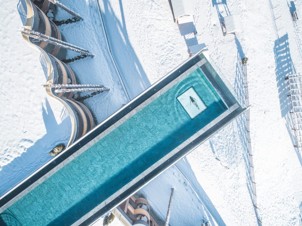 Für diesen faszinierenden Pool ist keine weite Anreise nötig. In Südtirol bietet das Alpin Panorama Hotel Hubertus ein Schwimm-Erlebnis der Extraklasse: In einem beheizten Outdoor-Pool in einer Höhe von 12 Metern und mit Glasboden ausgestattet, scheinen die Gäste wie frei zu schweben – inmitten der malerischen Landschaft mit Blick auf die Dolomiten. Sicherlich nichts für Höhenangst-Geplagte. Für die bietet das Hubertus allerdings noch zahlreiche Alternativen. Neugierig geworden? Ein Besuch auf der Website des Hotel Hubertus lohnt sich, dort gibt es unter anderem eine beeindruckende Kamerafahrt rund um den Sky-Pool.
