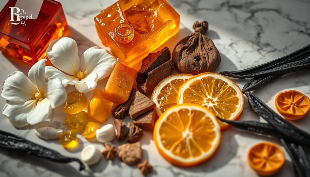 - Hölzer & Harze – Sandelholz, Zeder, Weihrauch für Struktur und Gravitas.