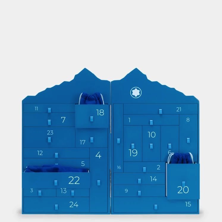 Mit 5000 Euro gehört der Adventskalender von Montblanc mit zu den teuersten, kann dafür aber auch mit luxuriösen Inhalten überzeugen. Hinter jedem nummerierten Türchen befindet sich ein Montblanc Produkt aus folgenden Kategorien: Schreibgeräte, Lederwaren, Herrenaccessoires, Schreibwaren, Tinten und Minen und Schreibtischaccessoires. Genau die richtigen Utensilien also, um dem Weihnachtsmann einen Wunschzettel zu schreiben. Das Design der Box ist von der Montblanc Kapselkollektion über das Leben im Winter in den Bergen inspiriert.
