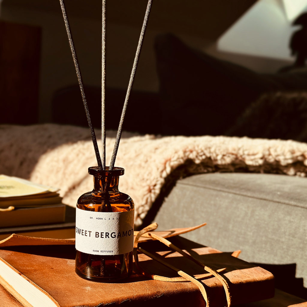 - Raumdiffusoren: Die Duftbasis der Diffusoren von Dr. Horn Labs sind wiederum ätherische, zu 100 % naturreine Öle. Im Gegensatz zum Spray entsteht der Duft aber nicht durch Sprühstöße, sondern durch die langsame Verdunstung der in Alkohol gelösten Öle. Sie ziehen in Rattanstäbchen ein, von denen aus sich der wohlige Duft langsam, gleichmäßig und lange anhaltend im Raum verteilt.