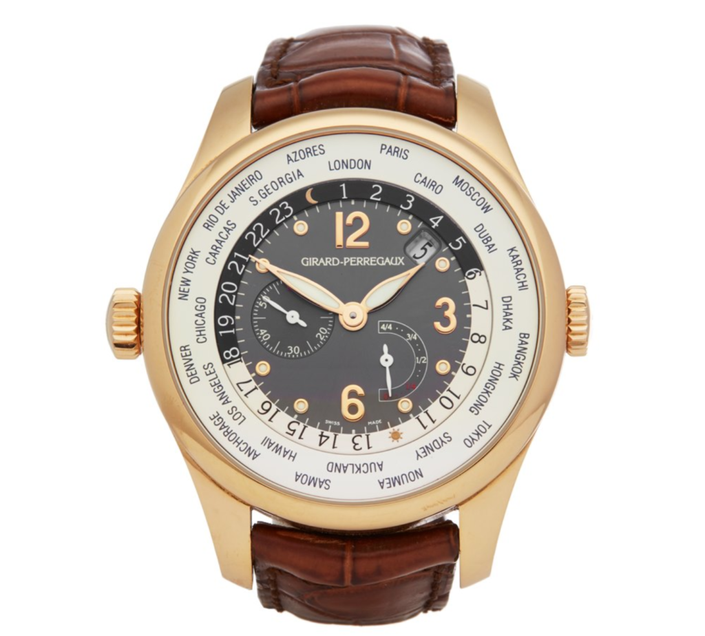 Shooting-Star der Chronographen: Die schwarze „ww.tc Shadow“ ist ein Muss für alle Liebhaber technischer Neuheiten: Zum ersten Mal verbindet Girard-Perregaux einen Flyback-Chronographen mit der Weltzeitanzeige. Robuste Schale, kraftvoller Kern: Das äußere Gehäuse aus schwarzer Keramik garantiert Härte und Verschleißfestigkeit. Das innere Gehäuse aus Titan sowie die verkürzten Hörner unterstreichen den sportlichen Stil dieser Uhr und machen das extrem leichte Modell mit Anzeige von 24 Zeitzonen zum idealen Begleiter für jeden Globetrotter.