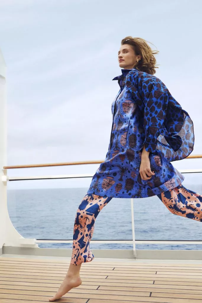 „Endless vacation“ heißt die Cruise Kollektion des deutschen Designer Duos ODEEH. Das Label ist bekannt für luxuriöse Mode nach der rar gewordenen Atelier-Tradition. Gemeinsam mit dem Künstler Marco Wagner hat das Designer-Duo eigens für die Cruise Collection Stoffe kreiert, deren maritimes Zentralmotiv ein abstraktes Segelschiff ist, übersetzt mit applizierten Ornamenten oder als Scherenschnitt.