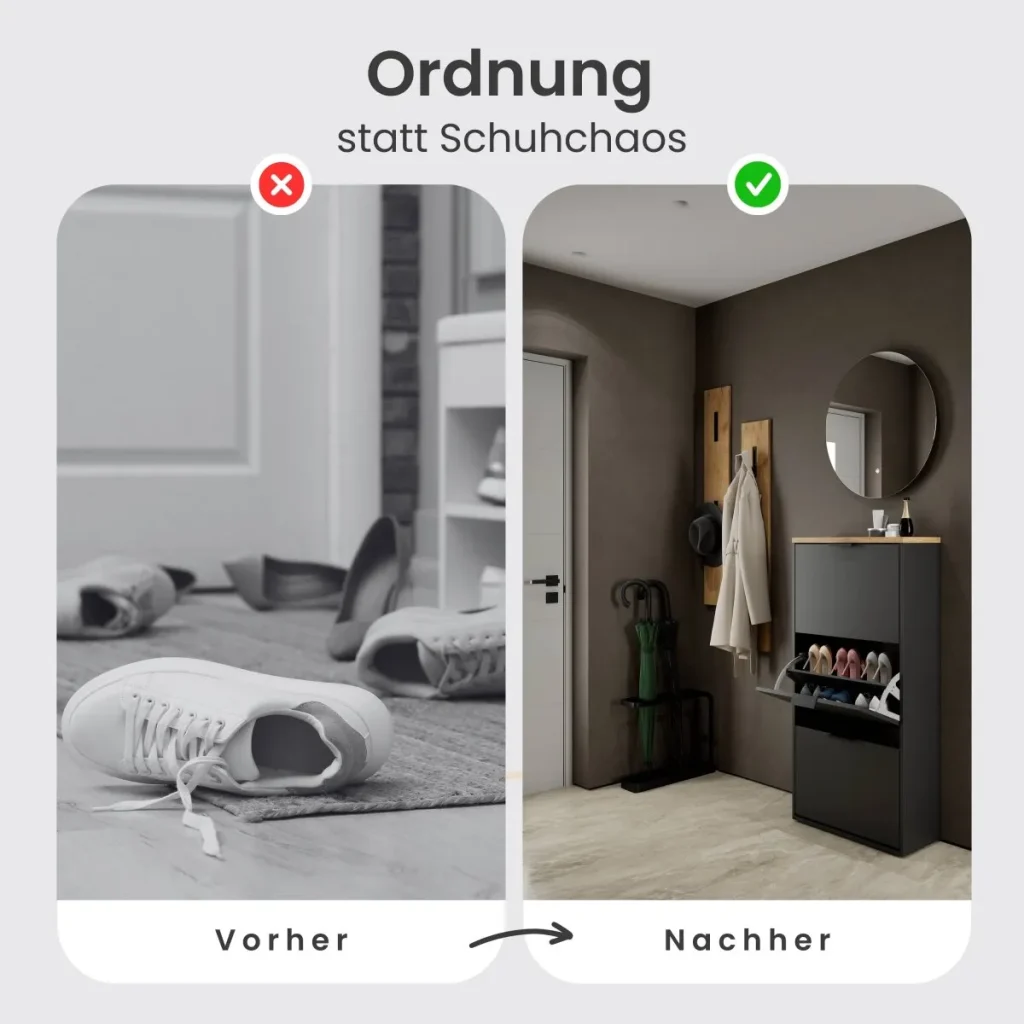 Wer nach schmale Garderobe Ideen sucht, sollte auf Modelle mit geringer Tiefe (20–30 cm) achten. Sie bieten ausreichend Platz für Schuhe, Accessoires und kleinere Textilien, ohne den Flur optisch zu blockieren.