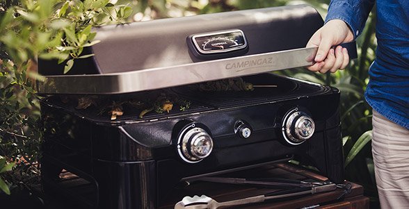Das Gute ist der Deckel, der zum Garen bestens geeignet ist. Wenn wir den Deckel öffnen, haben wir eine praktische Ablage, auf der wir das bereits fertige Grillfleisch oder die Würstchen ablegen können. Das ist sehr praktisch. Die Aufbauzeit beim Campingaz Attitude Gasgrill ist wie bei der Produktbeschreibung angegeben sehr schnell. Das schaffen wir in ähnlichen 2 Minuten in etwa.