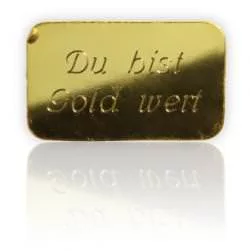 Je nach Gewicht des Barrens kostet dieser besondere Service zwischen €5,00 und €7,50. Der Bestellvorgang ist äußerst unkompliziert: Gewünschten Text online eingeben und wenige Tage später das goldene Kleinod in edler Geschenkverpackung in den Händen halten.