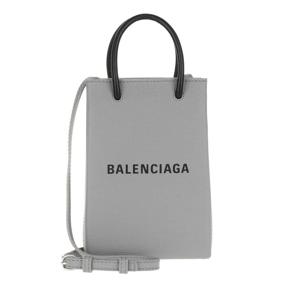 Geniale Idee: Diese Handy Tasche tarnt sich als Mini Shopping Bag – stilecht mit Henkel. Den praktischen Cross-Body-Gurt zum Umhängen hat sie natürlich auch. Von Balenciaga, ca. 725 Euro (über Farfetch.com oder Balenciaga.com)