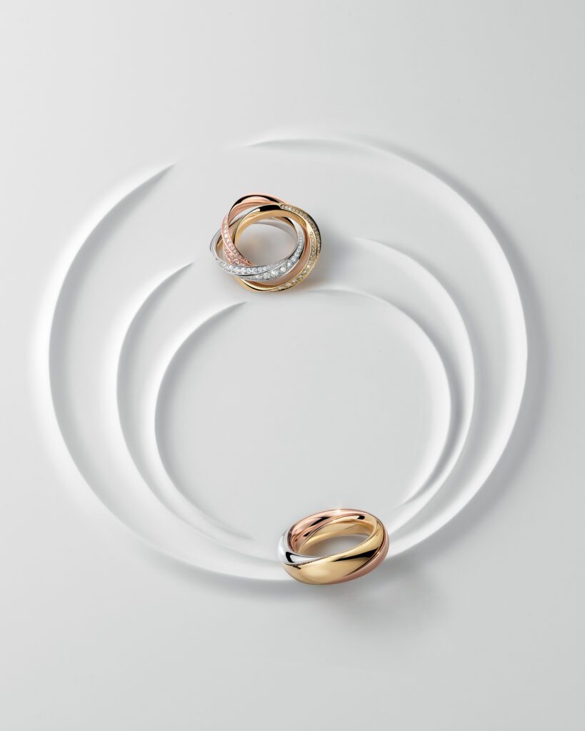 Um dieses beeindruckende Jubiläum zu feiern, hat Cartier eine exklusive Jubiläumsedition der Trinity Kollektion geschaffen. Diese limitierte Serie vereint die klassischen Elemente der originalen Kreation mit modernen Akzenten, um eine Hommage an die Vergangenheit und gleichzeitig einen Blick in die Zukunft zu ermöglichen. Jedes Stück wurde mit höchster Präzision gefertigt und spiegelt die unverkennbare Cartier-Exzellenz wider. Der Trinity Ring hat das Talent, sich immer wieder neu zu erfinden. Sein kreatives Potenzial verdankt er einem intelligenten Design, das von Cartier stets weiterentwickelt wurde. Dabei fallen zunächst die unterschiedlichen Volumina ins Auge, mit denen viel experimentiert wurde. So entstanden sowohl zarte als auch sehr voluminöse Ringe. Die Zahl der Einzelringe wurde auf bis zu zehn erhöht und ihr Design stilisiert. Das Ergebnis: kannelierte, facettierte oder godronierte Ringe.