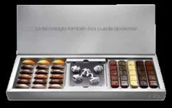 Das exklusive Set enthält 36 Schokoladen in 12 verschiedenen Sorten und Texturen. Dazu kommen noch 10 sogenannte Lioschokoladen mit den unterschiedlichsten Gewürzen und Kräutern. Eine CD macht die stimmungsvolle Komposition aus optischen und geschmacklichen Genüssen komplett. Sie zeigt den schokoladigen Feinschmeckern die Reise des Kakaos, von seinen Ursprüngen bis zur Verarbeitung durch Oriol Balaguer.