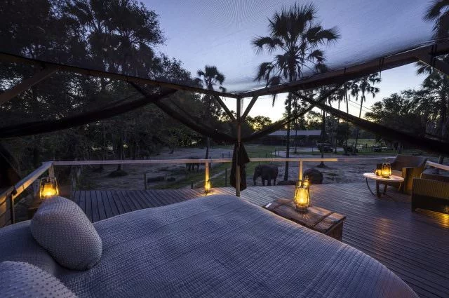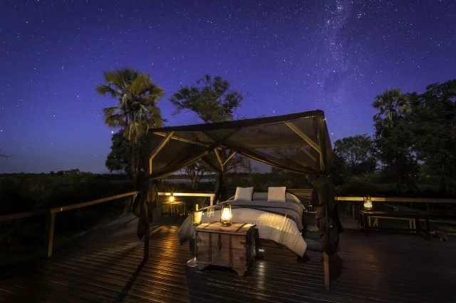 Nächte unter Afrikas Sternenhimmel erwarten Brautpaare im Abu Camp in Botswana, Little Kulala in Namibia und im Ruckomechi Camp in Simbabwe. Im schneeweißen Himmelbett vernehmen Brautpaare die Geräusche der afrikanischen Nacht und holen sich die Sterne vom Himmel.