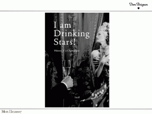 Das Buch „I´m drinking Stars. Dom Pierre Perignon“ erzählt die Geschichte des exklusivsten Champagners der Welt in seiner Geschichte, quer durch die Jahrhunderte. Kapitel für Kapitel wird der Mythos Dom Périgon entschlüsselt. Beginnend mit dem Pionier, Benedictine Monk Dom Pierre Perignon, über die Geschichte von Louis XV’s in Versailles, Marilyn Monroe’s Verlangen nach dem edlen Getränk und Karl Lagerfeld’s unlängst erschienener Werbekampagne für Dom Pérignon.