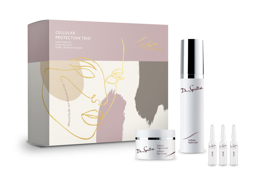Wie ein Schutzengel für die Haut wirkt das Set mit der Cellular Tagescreme, dem Cellular Hydro Gel und GLOW – The Radiance Ampoule. So geschützt, werden durch Umweltbelastungen wie Feinstaub und andere Schadstoffe beschleunigte Alterungsprozesse verzögert.