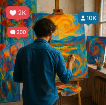 Um ihn herum stehen farbintensive Gemälde, sorgfältig gemalt, voller Emotion, Kraft und Detail. Um ihn herum stapeln sich farbenfrohe, großformatige Gemälde – voller Leben, Gefühl und Tiefe. Jedes einzelne erzählt eine Geschichte, spiegelt Gedanken, Träume, Wunden wider. Doch auf seinem Smartphone: 6 Likes. 1 Kommentar. 0 Verkäufe. Websites wie die Followerfabrik können zwar helfen – dennoch sind die Künstler oftmals am Selbst zweifeln.