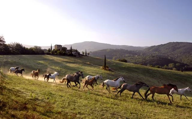 Assisi, Arezzo, Siena, Cortona und Perugia sind etwa eine Stunde Autofahrt entfernt. Auf dem Gelände liegt auch das Andalusier-Gestüt der Eigentümerfamilie, das reinrassige andalusischen Pferde züchtet.