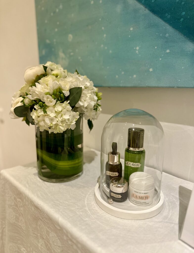 Und der Muße gaben sich die Gäste hin! Bei Champagner von Perrier Jouet und Catering von Panta Rhei tauschten sich die Frauen untereinander ebenso aus wie mit der Künstlerin. Die Gastgeberin Miriam Reitmeier zeigte sich begeistert: „Wir freuen uns, dass wir mit Dr. Sonja Lechner eine so bezaubernde und inspirierende Botschafterin für La Mer gewinnen und mit dem La Mer After Work Art Cocktail ein ganz besonderes Networking-Format gemeinsam kreieren konnten. Eine ausgesuchte Gruppe toller Frauen darf sich mit einem Skincare Atelier von unserem La Mer Brand Ambassador und Lead Aesthetician Marc Müller inmitten wunderbarer Kunst verwöhnen lassen und gleichzeitig neue Kontakte knüpfen – und unsere jeweils individuelle Schönheit zu zelebrieren!“