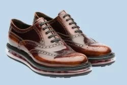 Schon längst sind Turnschuhe zu einem Anzug keine Seltenheit mehr. Der sportlich-elegante Look hat sich durchgesetzt und wird wohl noch lange kein Ende finden, vor allem wenn dabei Kreationen herauskommen, wie die neue Levitate Kollektion von Prada. Diese verbindet im Grunde Turnschuhsohlen mit dem eleganten Look von Budapestern und Co.