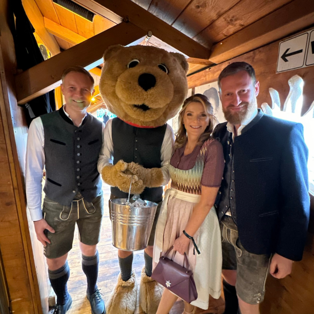 Auch Politiker wie Florian Hahn, Verteidigungspolitischer Sprecher CDU/CSU-Bundestagsfraktion mit Partnerin Beauty- und Longevity-Ärztin Maja Henke. Aber auch die Stars und Sternchen ließen sich nicht lange bitten. Topmodels wie Sarah Brandner, Anna Ermakova, Barbara Meier mit Ehemann Milliardär Klemens Hallmann, waren ebenso beim Almauftrieb wie die Schauspieler Wayne Carpendale mit Ehefrau Moderatorin Annemarie Carpendale, Nele Kiper, Laura Osswald und Monica Meier-Ivancan, die sich wie viele der Gäste bei ihrem stylishen Wiesn-Outfit auf den Trachtenausstatter Kinga Mathe verließen.