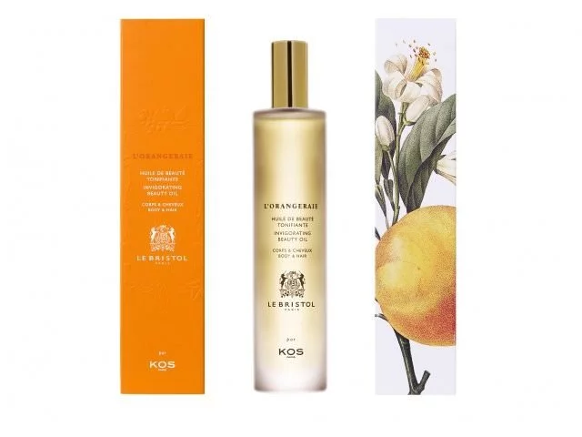 Das Beauty-Öl La Roseraie duftet nach Rose und Wald, ganz wie im Rosengarten des Hotels. Edle Öle aus Hibiskus, Amaranth und Rosen nähren die Haut. L’Orangeraie ist vom Orangenhains des Le Bristol Paris inspiriert. Zitrone, Mandarine, Orangenblüte, Bergamotte, Orange und Aprikose beleben duftend die Sinne.