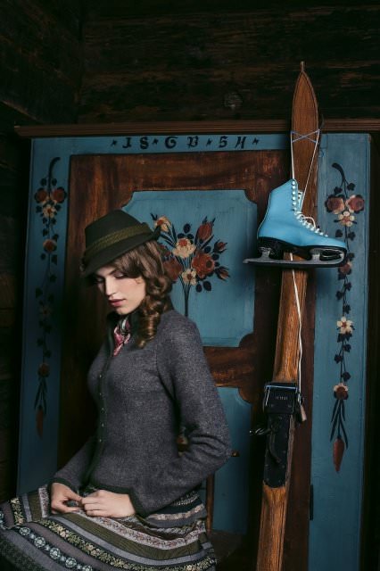 Wer kein traditionelles Dirndl sucht, könnte zu Lena Hoscheks Wally- und Gretlkleidern namens „Weinstein“, „Lärche“ und „Abendrot“ greifen. Perfekt dazu passen der warme „Liesl“ Pullover mit traditionellem Zopfmuster und der Walkjanker „Franz Josef“.