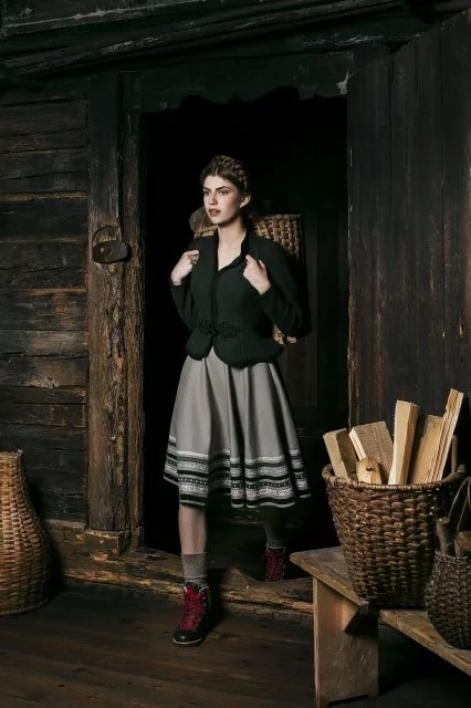 Wer kein traditionelles Dirndl sucht, könnte zu Lena Hoscheks Wally- und Gretlkleidern namens „Weinstein“, „Lärche“ und „Abendrot“ greifen. Perfekt dazu passen der warme „Liesl“ Pullover mit traditionellem Zopfmuster und der Walkjanker „Franz Josef“.