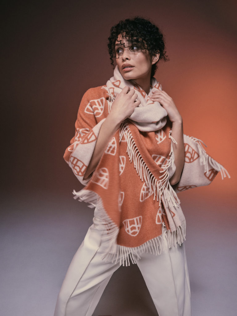 Das weiche Kaschmir-Plaid THE EMBRACE II ist ein vielseitiges Wohnaccessoire mit einem einzigartigen Design, das dem MAYBACH-Logo nachempfunden wurde. Kreativ eingesetzt, eignet es sich ebenfalls als modisches Accessoire. (rechts oben)