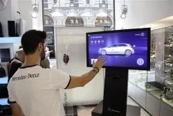Dieser feierte in diesen Tagen in Mailand seine große Eröffnung, bei der Formel-1-Pilot Nico Rosberg als erstes die Funktionen des „Visionary Stores“ testen durfte. So konnte er sich zum Beispiel auf einem iPad seine Traum-A-Klasse konfigurieren und den Wagen direkt via Facebook seinen Freunden zeigen. Auf einem Riesenbildschirm kann man dann der Konfiguration des Wagens zusehen.