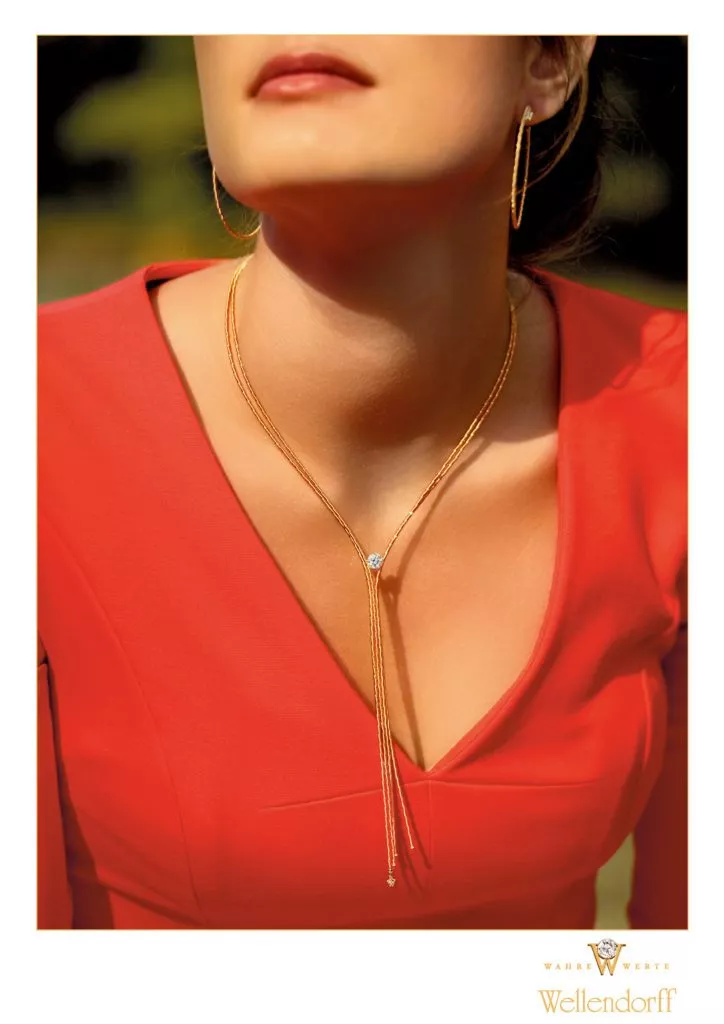 Wellendorf präsentiert in diesem Jahr ein unglaubliches Collier, das jede Beschenkte dahin schmelzen lassen dürfte. Das Collier mit dem einprägsamen Namen »Liebesverführung« besteht aus vier Glanzkordeln aus 18 Karat Gold, die in ihrem Zentrum einen 1,3 karätigen Diamant funkeln lassen. Der Diamant scheint geradezu am Dekolleté der Trägerin zu schweben, da er mit einer anspruchsvollen Fassung versehen ist. Als feines Detail schließt die Verlängerungskette mit einem Brillantwürfelchen ab. Dies macht das Collier im Größenumfang variabel und bietet somit je nach Ausschnitt der Trägerin verschiedene Tragevarianten sowie Platz für eine persönliche Gravur.