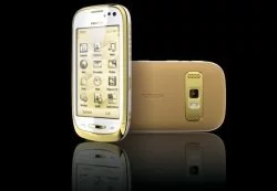 Freunde des gepflegten Luxus will Nokia mit Gold, Leder und Saphir überzeugen. Das Gehäuse ist mit einer 18-Karat-Goldbeschichtung überzogen, die Rückseite mit edlem Leder versehen und die Taste, mit der man zum Startbildschirm gelangt, wurde aus einem Saphir hergestellt.