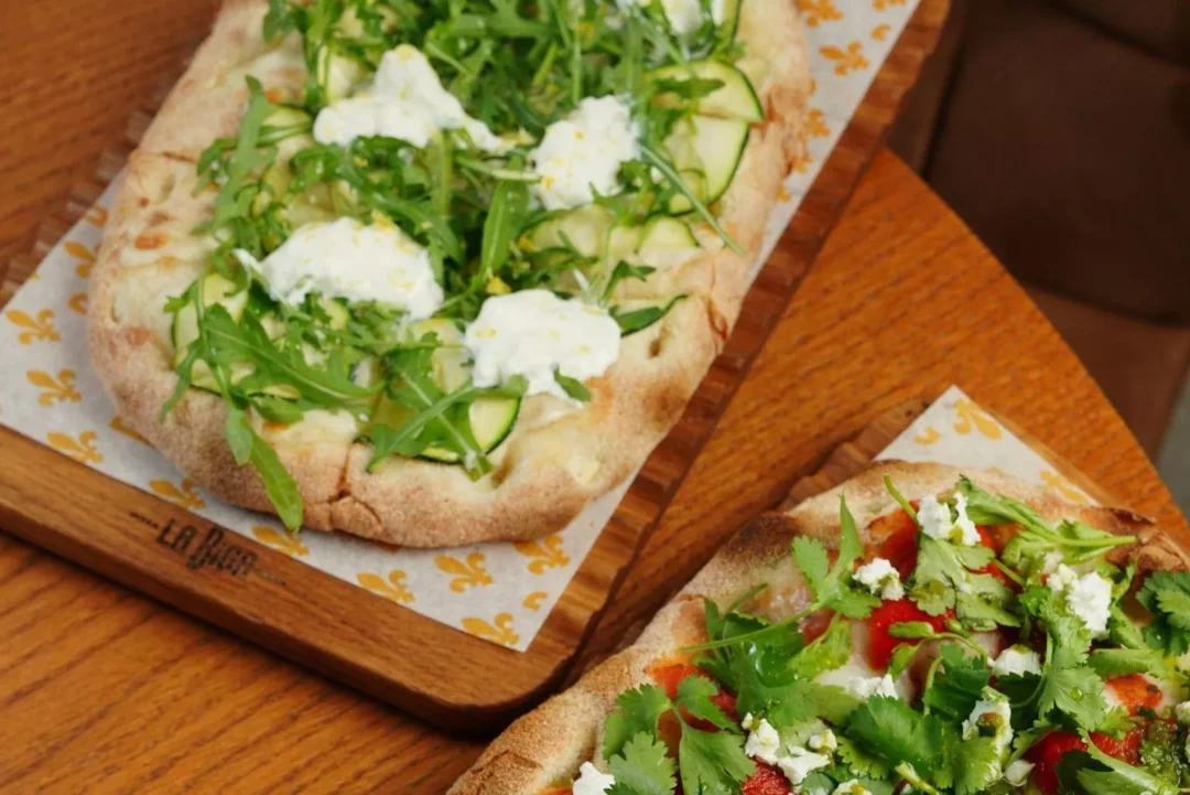 Die Pinsa Romana mit Räucherlachs und Avocado wird noch mit frischem Rucola verfeinert. Zum Schluss kommt noch etwas Zitronensaft und Pfeffer dazu . Diese Pinsa ist besonders frisch und leicht, perfekt für einen sommerlichen Genuss.