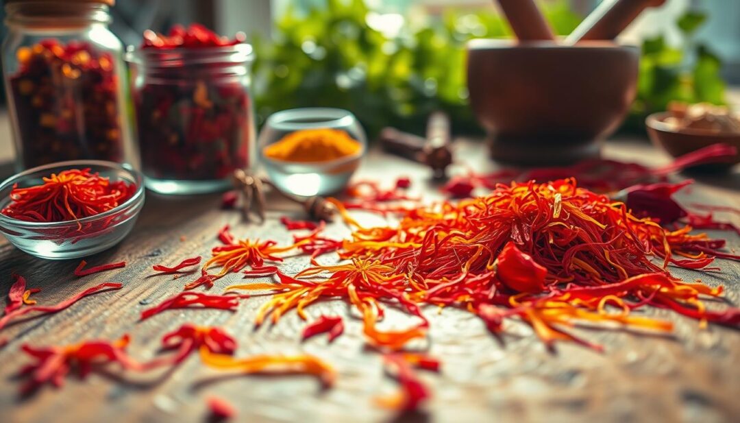 - Safran wird oft in Kombination mit anderen Gewürzen und Aromen verwendet