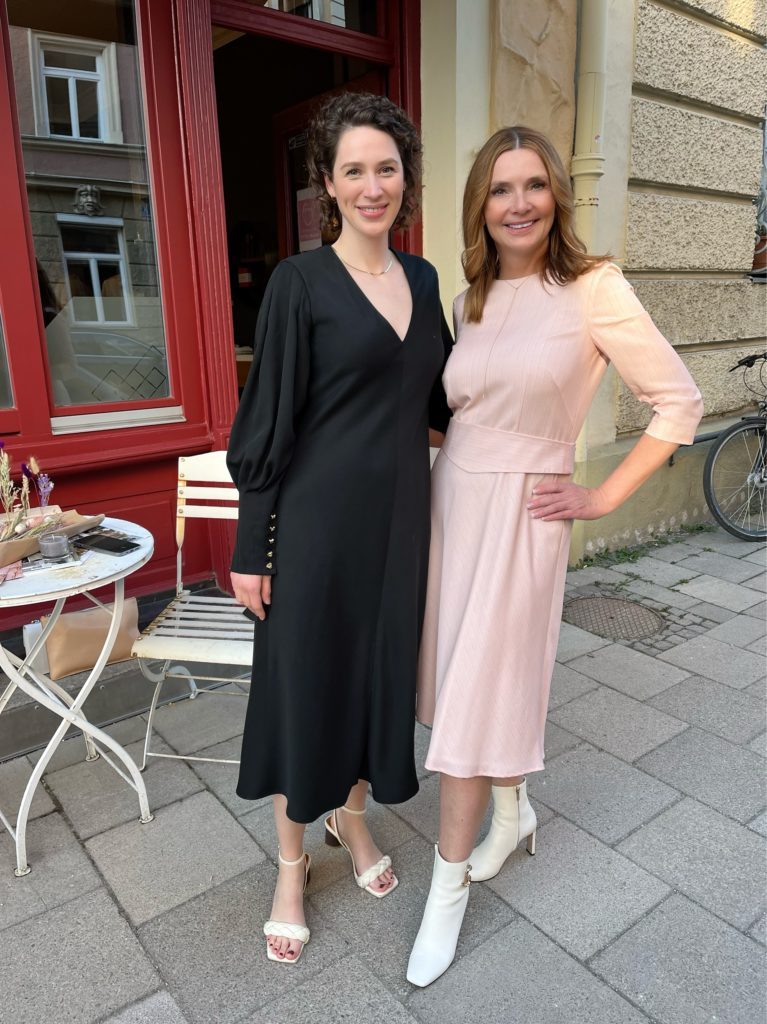 Sonja und ihre zauberhafte Art begeistern mich. Ich habe sie tatsächlich über Instagram entdeckt und dann einfach angerufen. Nach meinem Anruf wollte ich Sonja kennenlernen und wir waren sofort auf einer Wellenlänge. Ich erzählte ihr davon, dass ich meine Kundinnen als Kunst- und Kulturinteressiert sehe und fragte Sonja, ob sie Lust habe für uns zu modeln. Aus unserem ersten Shooting entwickelte sich eine Freundschaft. So hatten wir die gemeinsame Idee zu einem kunstinspirierten Kleid. Dieses Kleid wollte ich natürlich Sonja widmen. Die feminine Form des Kleides erinnert an seine wundervollen Namensgeberin Dr. Sonja Lechner. Sonja steht für mich für Female Entrepreneurship und lebt nach dem wundervollen Wert „We rise by lifting others“. Diese Wärme und tiefe Verbundenheit transportiert Sonja als unsere Markenbotschafterin wunderbar.