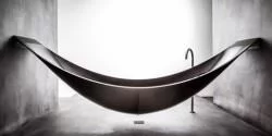 Die Inspiration für das Design der Badewanne „Vessel“ war eindeutig eine Hängematte. So hat diese Wanne keinerlei Kontakt zum Boden und das Wasser wird direkt in einen Ablauf im Boden abgelassen, denn ein Rohr oder Ähnliches würde die Optik stören. Angebracht wird „Vessel“ also nur an zwei gegenüberliegenden Wände und „schwebt“ so quasi im Raum.