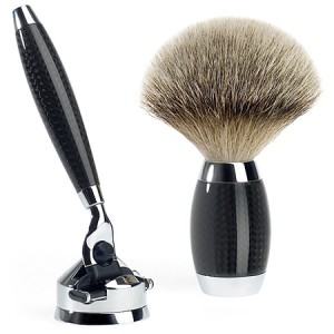 Der Anteil feinster Präzisionsarbeit ist erheblich: Die Fertigung des heraus-schraubbaren Pinselkopfes, die Politur der Metallteile, Oberflächenbeschichtung, Herstellung und Finish des Carbon erfolgen manuell. Selbst der Carbon-Körper entsteht von Hand: Rohlinge werden mit dem Gewebe bespannt und in eine Form eingelegt, seine Fasern dabei gleichmäßig ausgerichtet. Die so erzielte extrem hohe Oberflächenqualität und der ebenmäßige Verlauf der Gewebestruktur akzentuieren die Schönheit des Werkstoffes. „Angesichts solch aufwändiger Verarbeitungsprozesse klingt es vielleicht paradox“, erklärt Andreas Müller, „und dennoch – wir geben Liebhabern der Nassrasur mit dem Carbonset auch ein Stück Natur und Ewigkeit in die Hand.“
