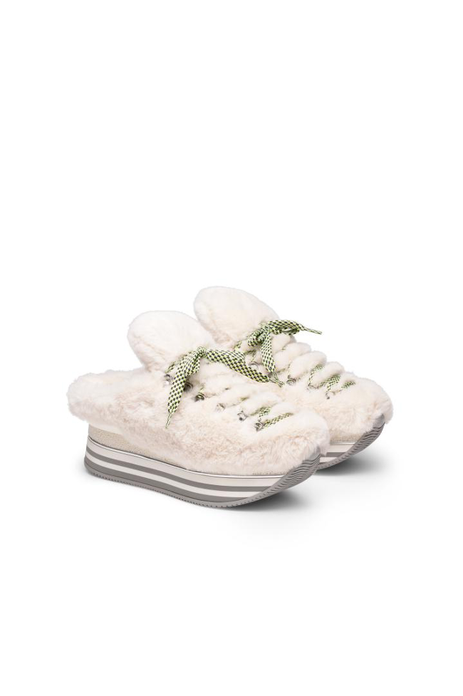 Selbst für die kalte Jahreszeit hat der italienische Schuhhersteller Hogan die perfekten Plateau Sneakers für die Damenwelt im Sortiment. Plateau Sneakers mit einem warmem Kunstfellbesatz sorgen auch im Winter für warme Füße. Die rutschfeste Plateausohle streckt die Damenbeine um sieben Zentimeter. Die mit Liebe zum Detail gefertigten Damen Plateau Sneakers vollenden den perfekten Look.