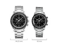 Große Uhren liegen 2009 voll im Trend. Passend dazu hat der Schweizer Luxus-Uhrenhersteller OMEGA die Neuauflage seiner legendären Speedmaster Professional Moonwatch, die Speedmaster Moonwatch Co-Axial, mit einem 44,25 mm großen Gehäuse versehen. Auf den ersten Blick unterscheiden sich die beiden Uhren vor allem durch die unterschiedlichen Gehäusegrößen. Bei genauerem Hinsehen fällt jedoch auf, dass die neue Moonwatch Co-Axial über ein Datumsfenster bei 6 Uhr verfügt. Sie ist in zwei Ausführungen erhältlich: Zum einen mit einem mattschwarzen Zifferblatt, das der klassischen…