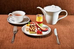Was in der Patisserie der hoteleigenen MO Bar kreiert wurde, ist fast schon zu schön zum Aufessen:Die Miniatur-Stilettos von Jimmy Choo auf dem Teller bestehen zum Beispiel aus Limonen- und Schokoladenbiskuit mit Schokolade. Kleine Taschen samt Muster und Signatur von Jimmy Choo locken als schokoladige Verführung, die zum Beispiel mit Rosen- oder Lycheeschaum gefüllt sind.