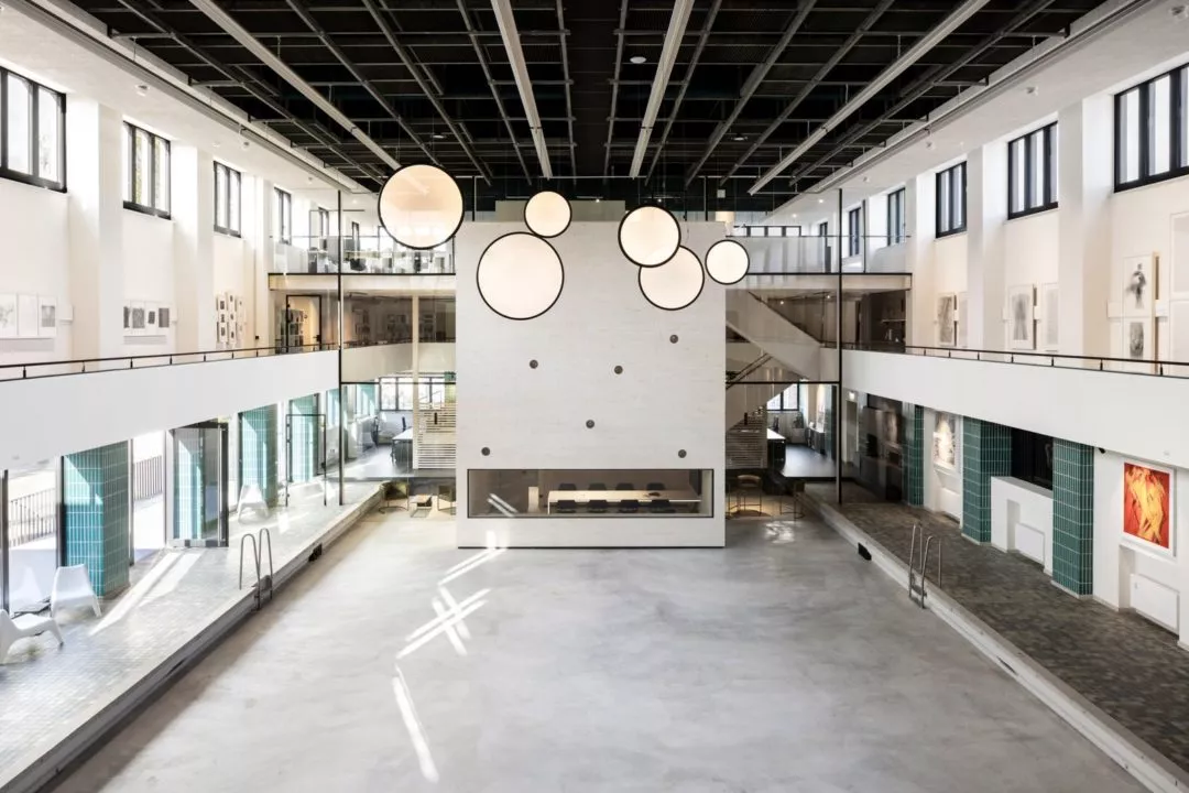 Einzigartig für diese Ausstellung: das Hallenbad Ost. Die ehemalige Badeanstalt im Kasseler Stadtteil Bettenhausen wurde im Jahr 1929 im Bauhausstil errichtet, aufwändig und respektvoll renoviert, 2021 neu eröffnet und als hochrangiges Einzeldenkmal geschützt sowie 2022 mit dem hessischen Denkmalschutzpreis ausgezeichnet. Die Wahl des Veranstaltungsortes passt perfekt zur Ausstellung, da sich Theron in ihren Kunstwerken mit dem Element Wasser auseinandersetzt und das Hallenbad Ost selbst eine beeindruckende Architektur aufweist.