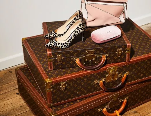 Die Farbkombination Rosa und Rot passt wunderbar zum Valentinstag: Für einen aufsehenerregenden Retro-Look sorgt die pre-loved Jimmy Choo Vintage Umhängetasche (Jimmy Choo, Vite Envogue, ca. 320 Euro, gesehen bei lodenfrey.com).