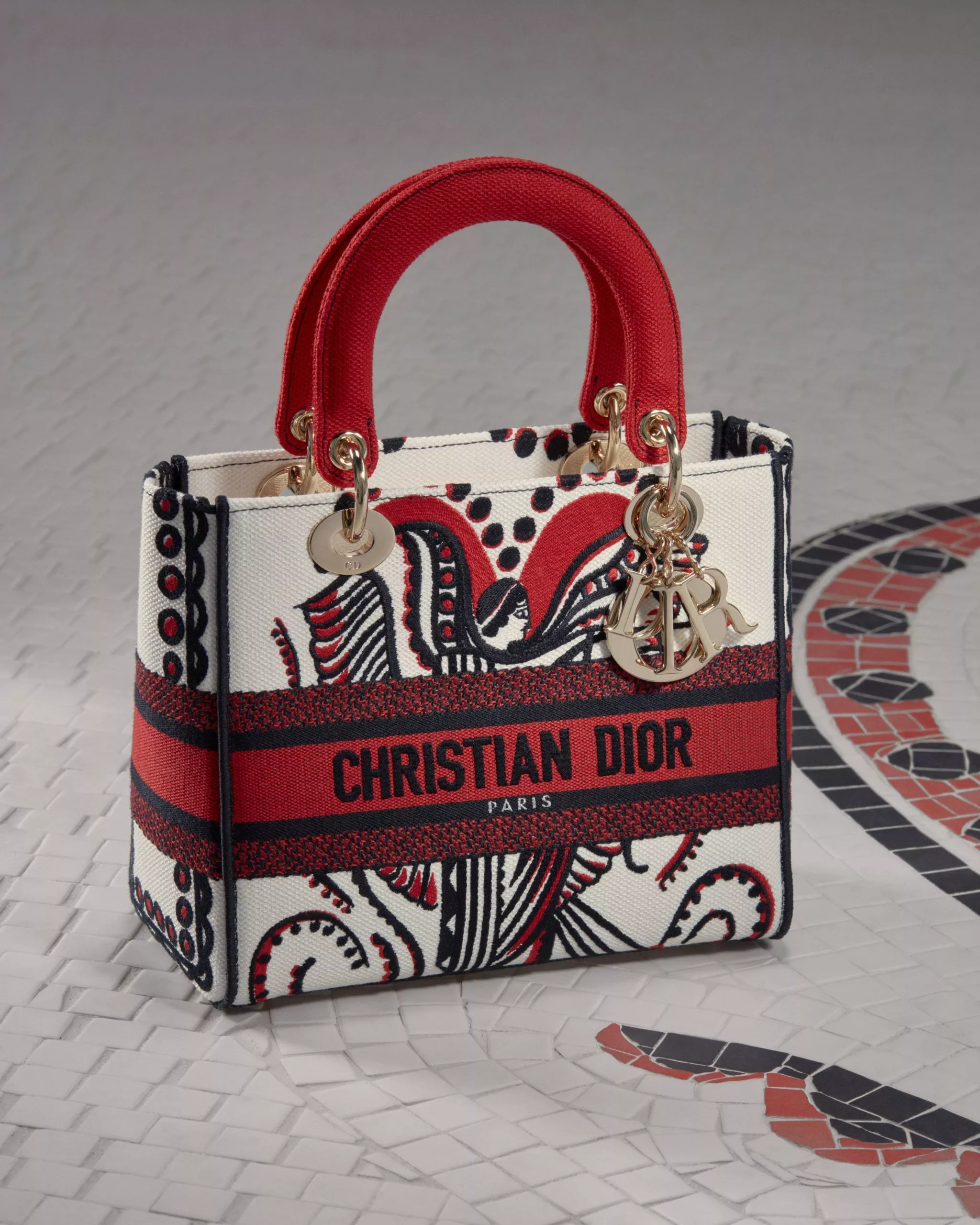 Ebenfalls aus dem Hause Dior und perfekt passend zum Valentinstag: Die „Cupidon“-Linie umfasst neben Taschen, Schmuck und Schuhen auch Homewear, angelehnt an Cupido, auch bekannt als Eros. Der Gott der Liebe der griechischen Mythologie wurde als retro-anmutender Print in den Farben Weiß, Rot und Schwarz in verschiedenen Accessoires verewigt. Dazu gesellen sich weitere Designs, wie etwa opulenter Goldschmuck oder extravagante, goldene Lady Dior Taschen und Smartphone-Bags jeweils mit Herz-Details.