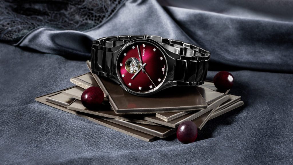Nicht nur am Valentinstag, sondern Tag für Tag versprüht eine Uhr Liebe und erinnert bei jedem Blick aufs Handgelenk an das Wertvollste, was man sich schenken kann: gemeinsam verbrachte Zeit. Das Modell „True Secret“ von Rado ist für Damen das ideale Valentinstags-Geschenk. Hier verschmilzt beständig schöne schwarze Hightech-Keramik mit einem sinnlich roten Zifferblatt, der Farbe der Liebe. Der Farbverlauf im dégradé-Stil betont die mystische Aura dieser Uhr, die ihr Geheimnis bei 12 Uhr preisgibt. Dort erlaubt ein kleiner runder Ausschnitt einen Blick auf die liebevoll verzierte Unruh, das schwingende Herz des mechanischen Werks. Mit einer erweiterten Gangreserve von 80 Stunden wird es den Lieblingsmenschen treu begleiten, selbst wenn die Uhr einmal abgelegt ist. Zwölf funkelnde Diamanten ersetzen die Ziffern und krönen Stunde um Stunde der gemeinsamen Zeit. Die Rado True Secret (RR27107742) ist für 2.320 Euro (Hersteller-UVP) im ausgewählten Fachhandel und im Rado Online Shop erhältlich.